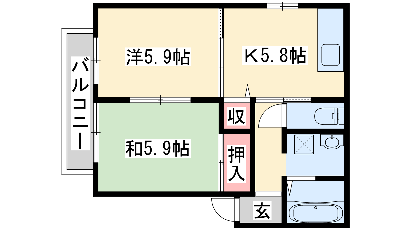 - K5.8帖、洋室5.9帖、和室5.9帖