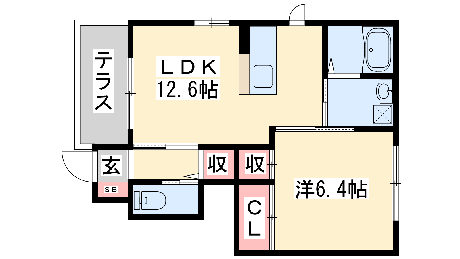 - LDK12.6帖、洋室6.4帖
