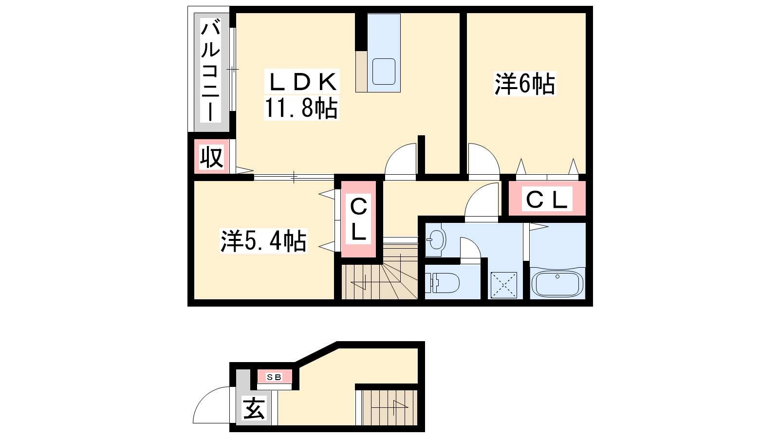 - LDK11.8帖、洋室6帖、洋室5.4帖