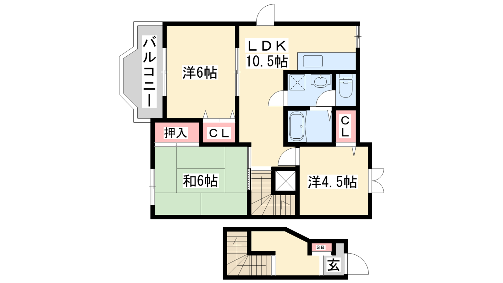 - LDK10.5帖、洋室6帖、洋室4.5帖、和室6帖