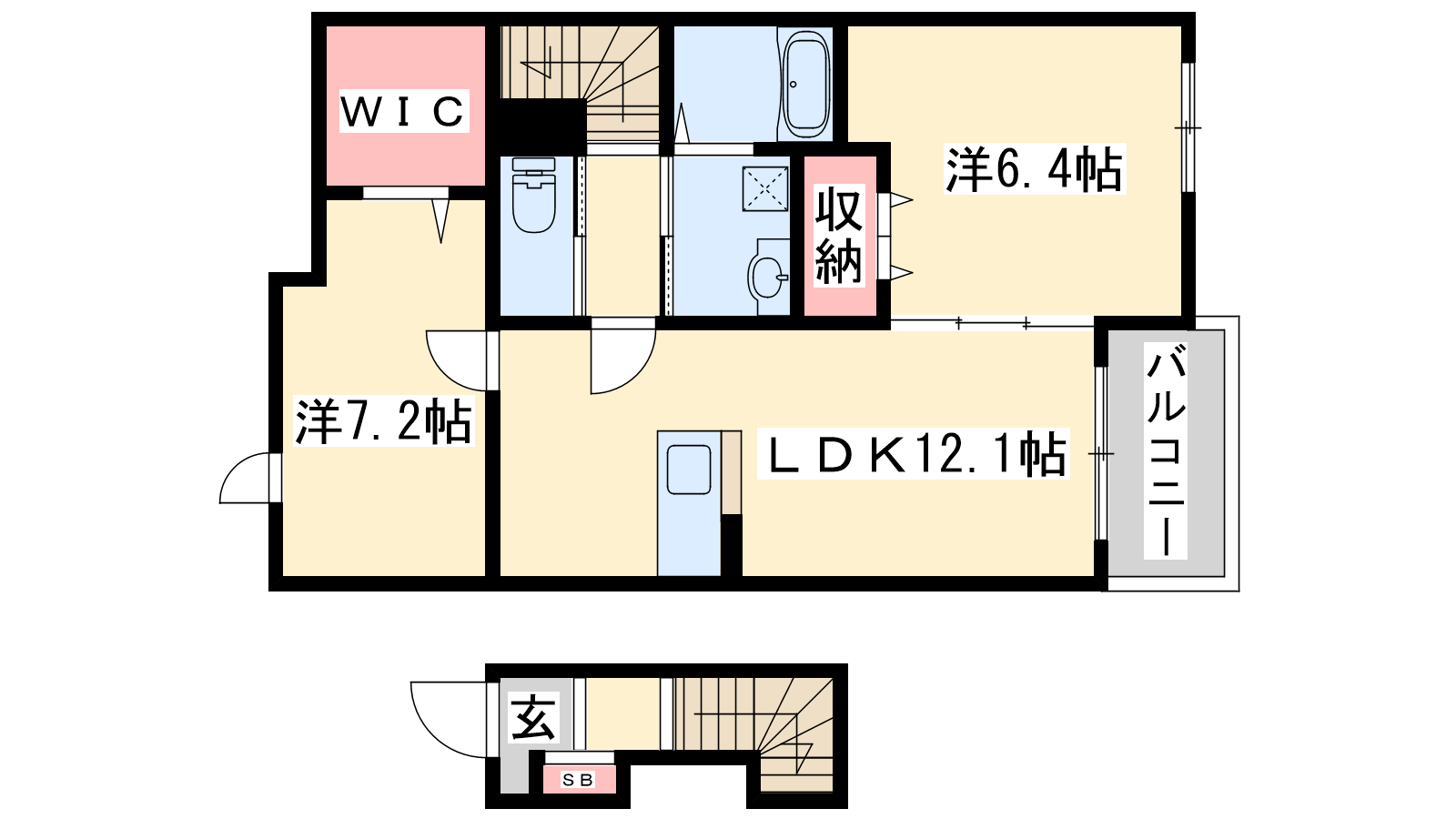 - LDK12.1帖、洋室7.2帖、洋室6.4帖