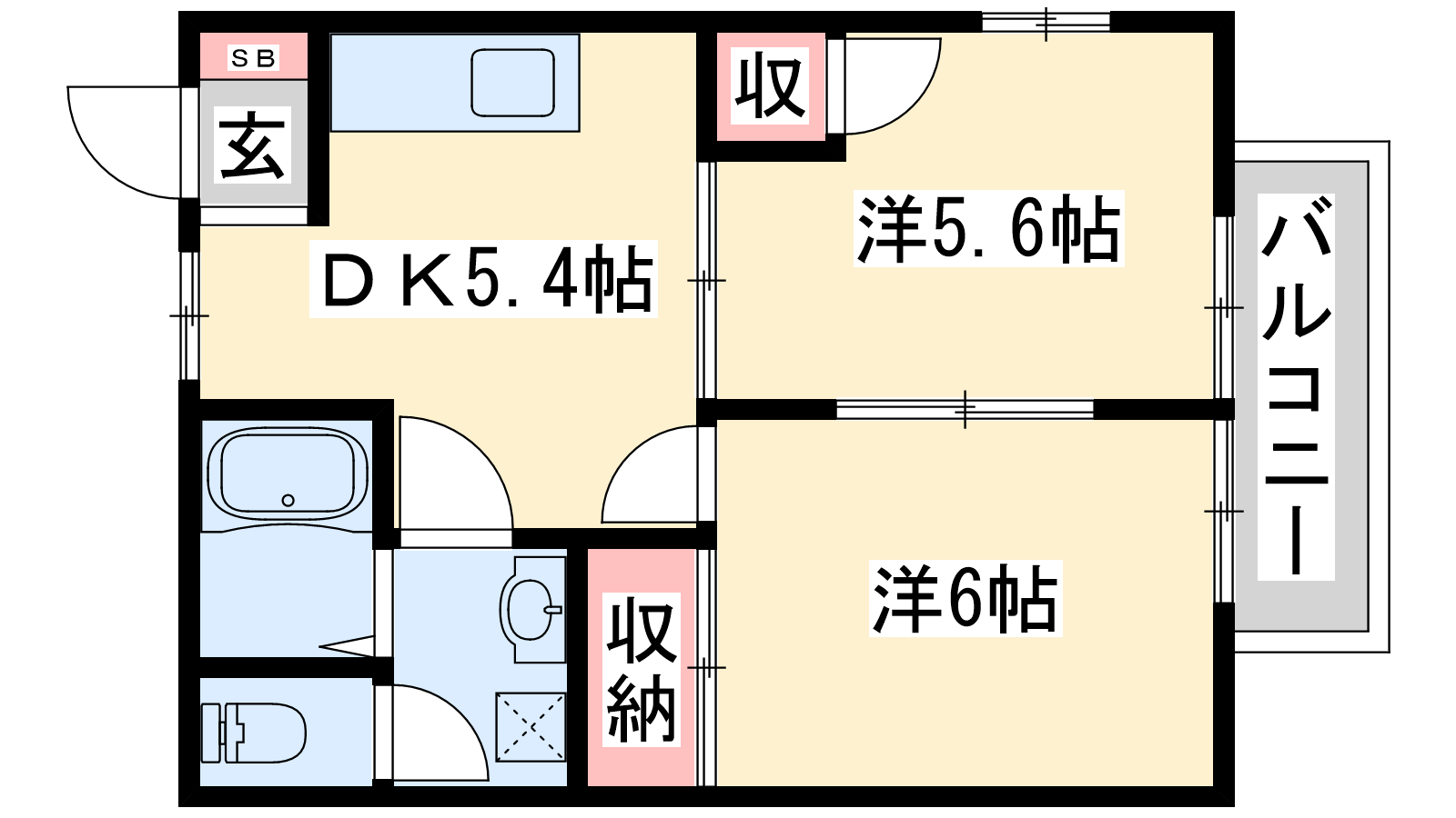 - DK5.4帖、洋室6帖、洋室5.4帖