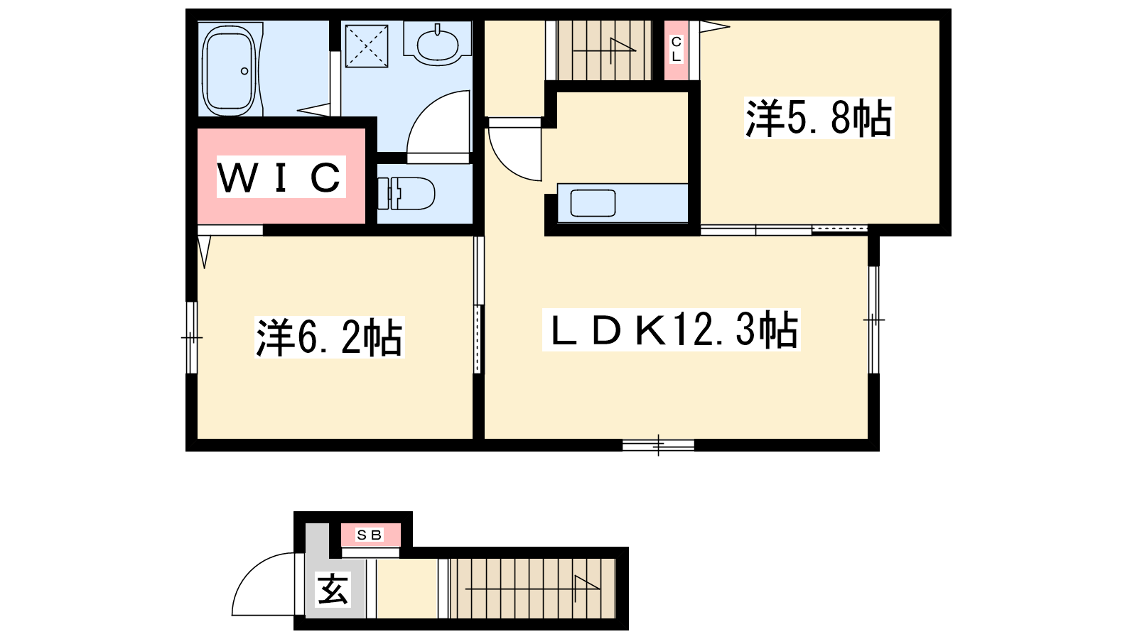 - LDK12.3帖、洋室6.2帖、洋室5.8帖