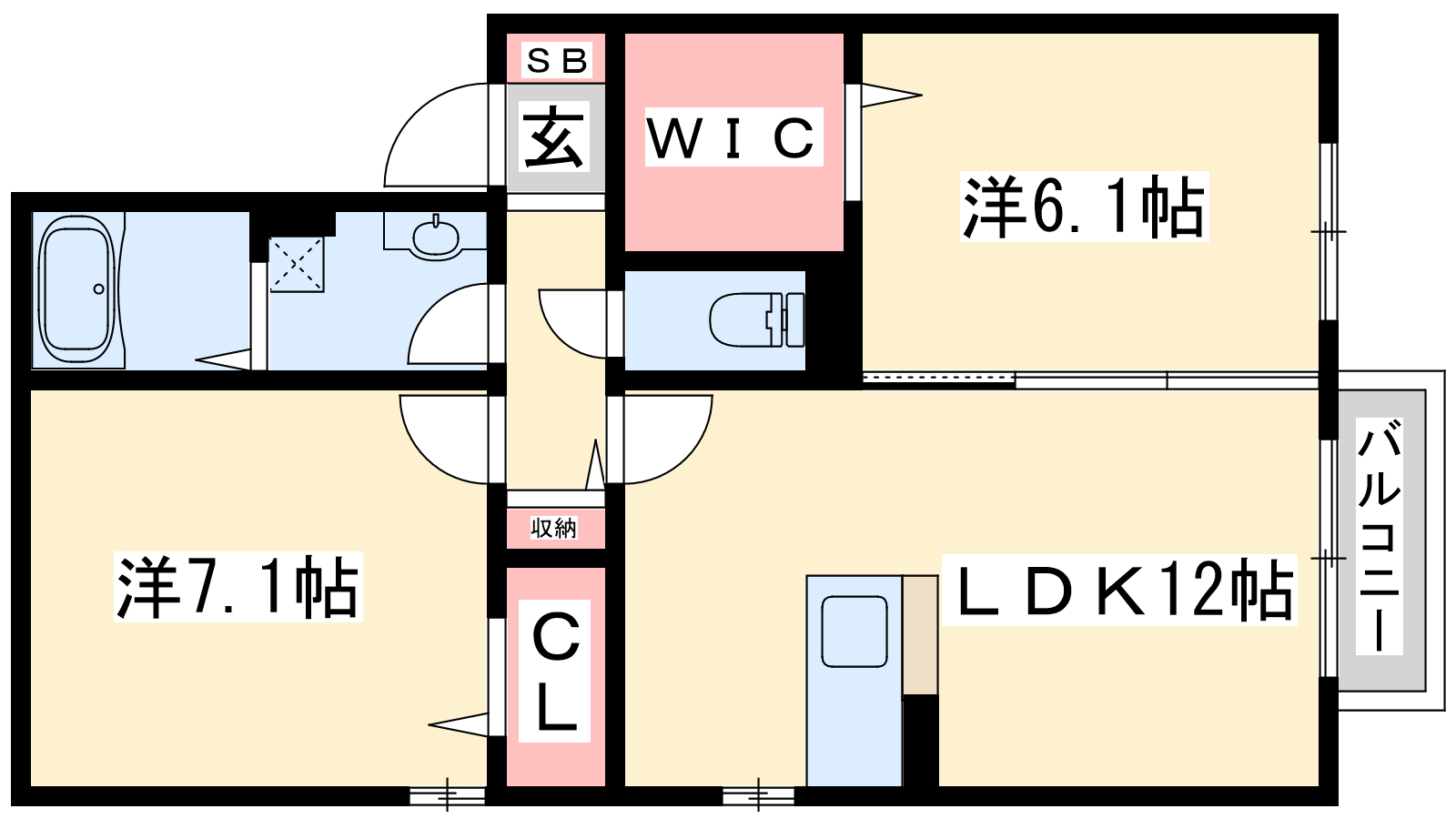 - LDK12帖、洋室7.1帖、洋室6.1帖