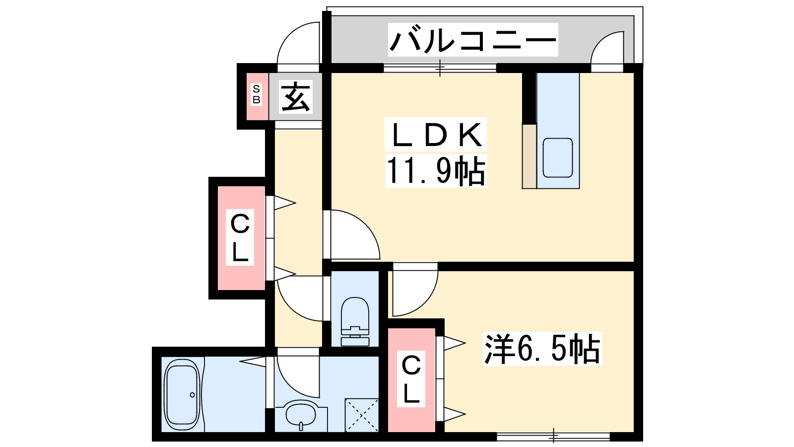 - LDK11.9帖、洋室6.5帖