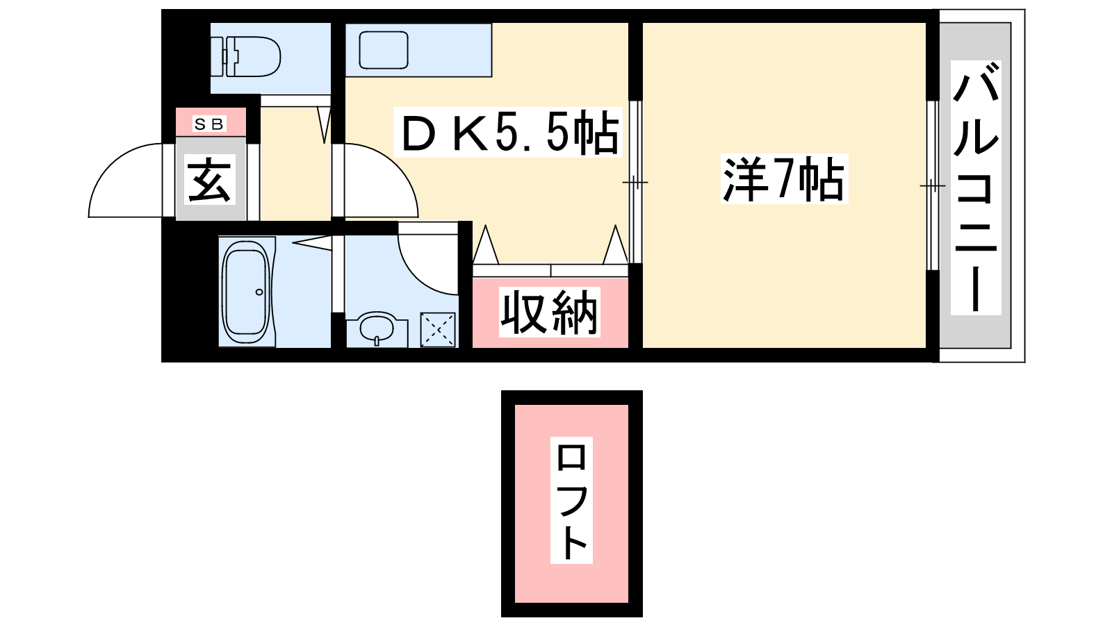 - DK5.5帖、洋室7帖