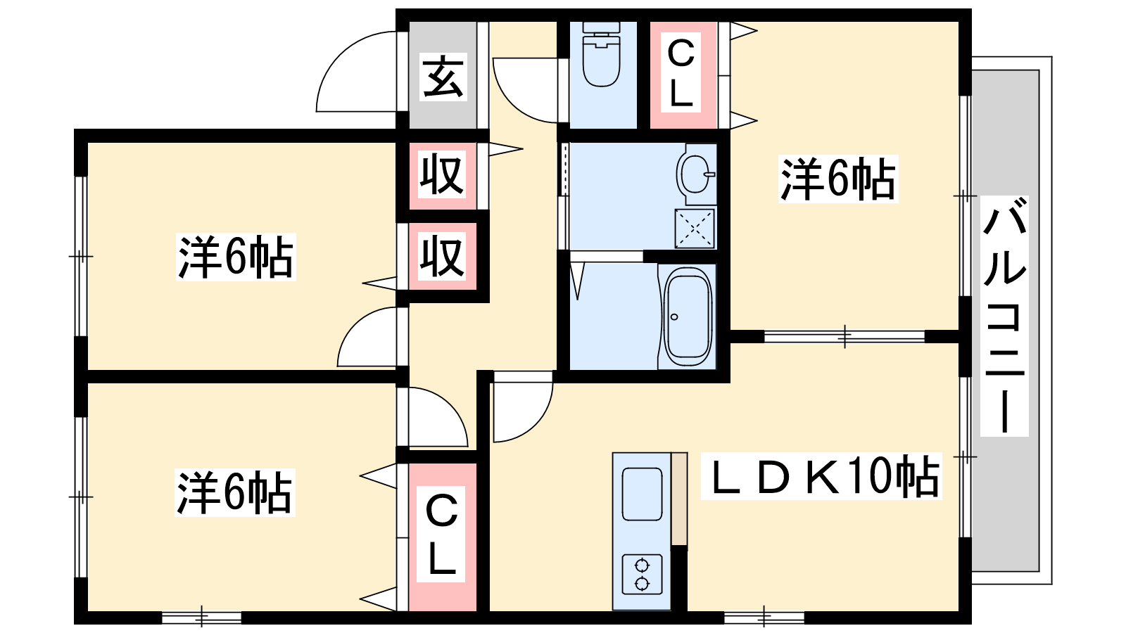 - LDK10帖、洋室6帖、洋室6帖、洋室6帖