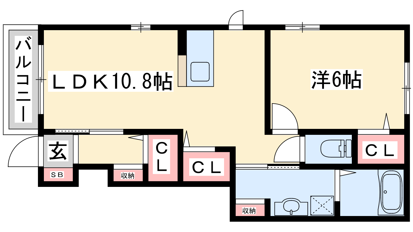 - LDK10.8帖、洋室6帖