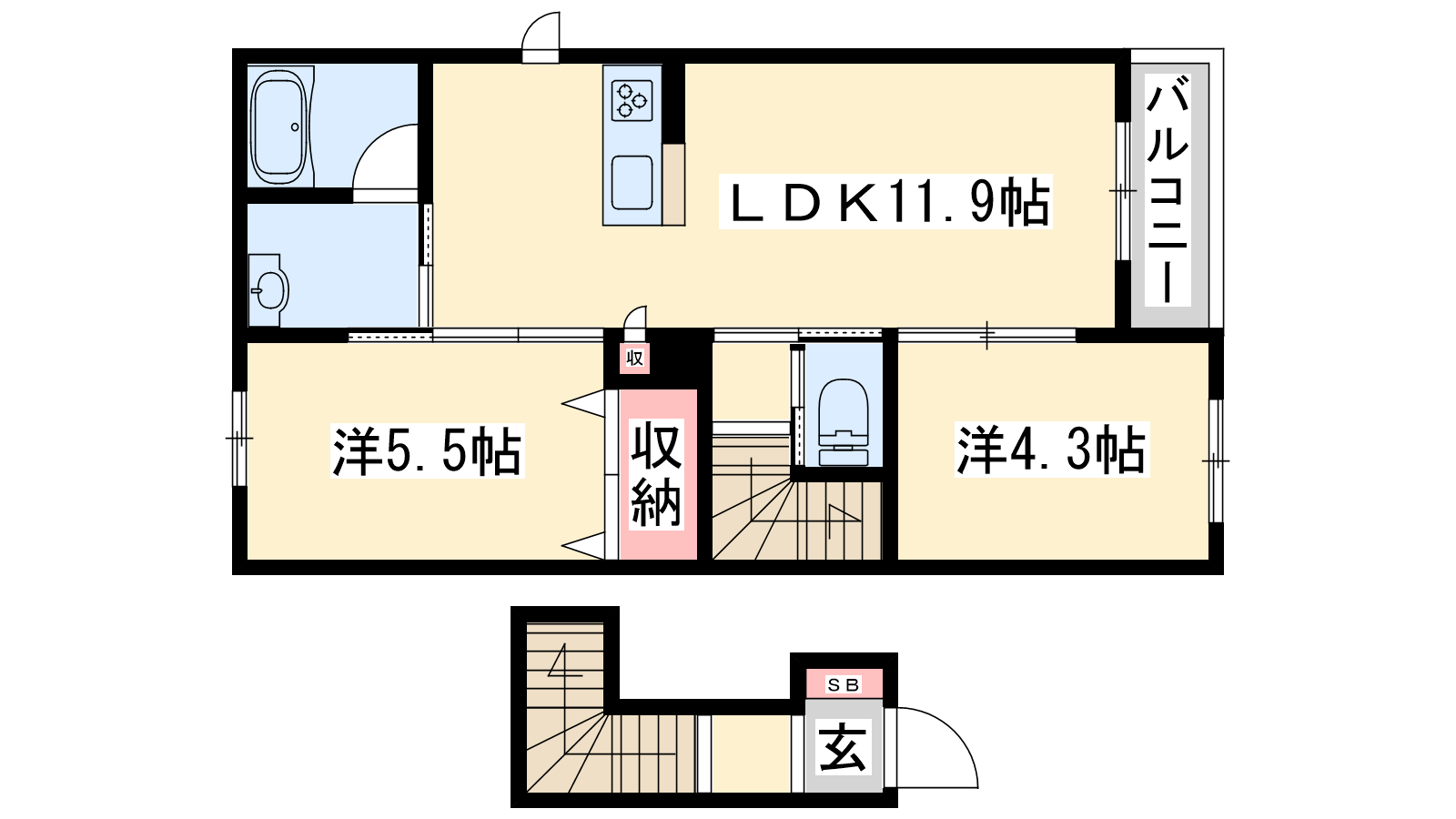 - LDK11.9帖、洋室5.5帖、洋室4.3帖