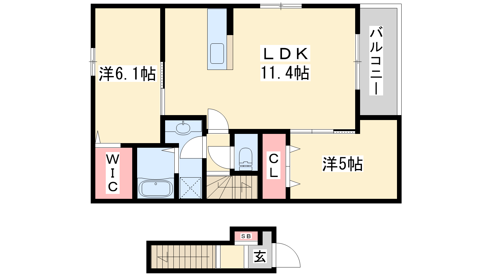 - LDK11.4帖、洋室6.1帖、洋室5帖
