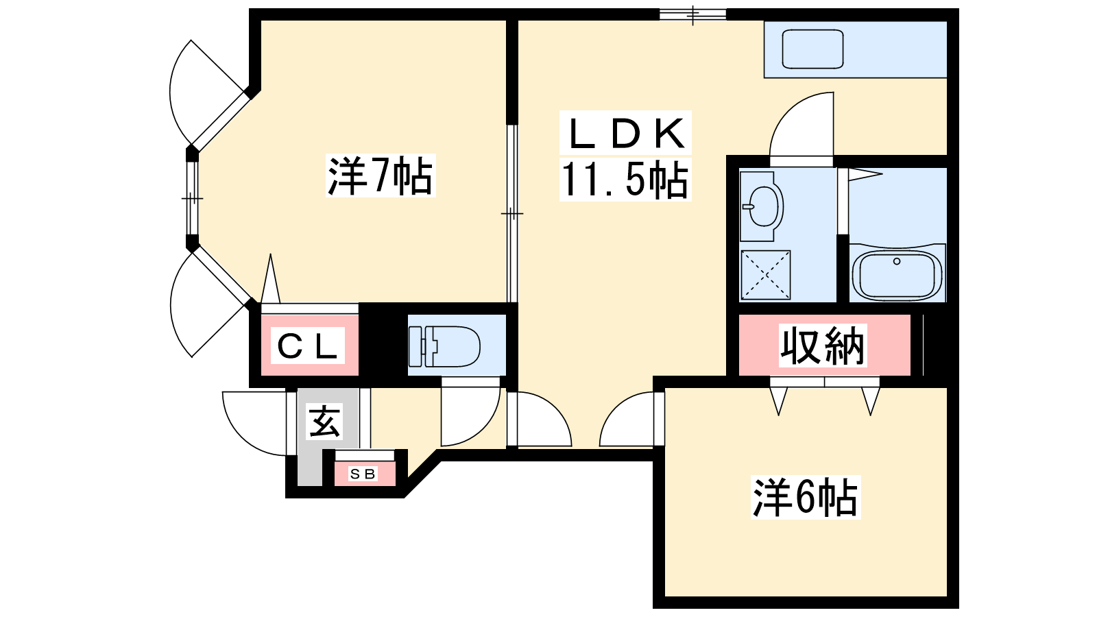 - LDK11.5帖、洋室7帖、洋室6帖