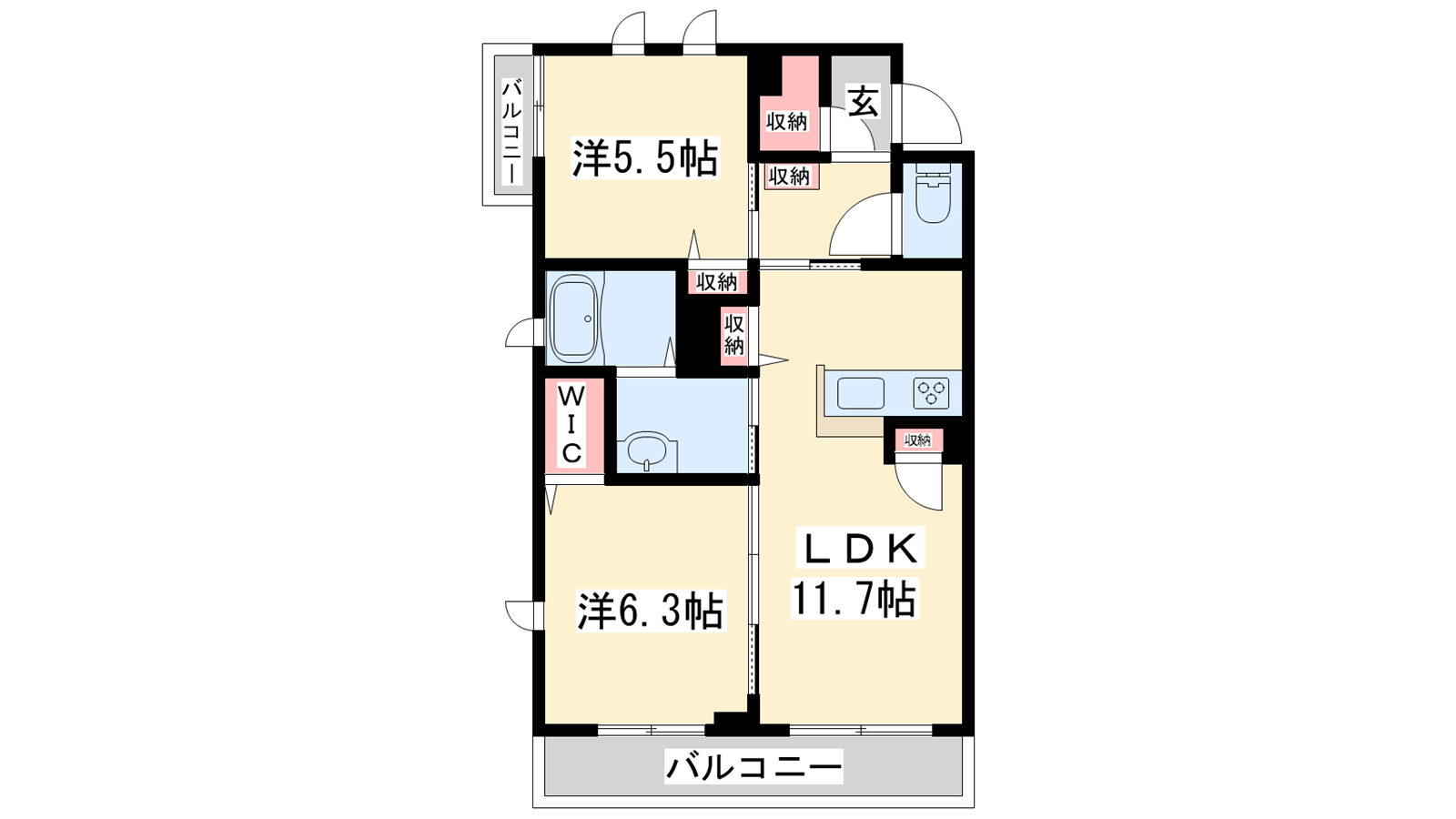 - LDK11.7帖、洋室6.3帖、洋室5.5帖