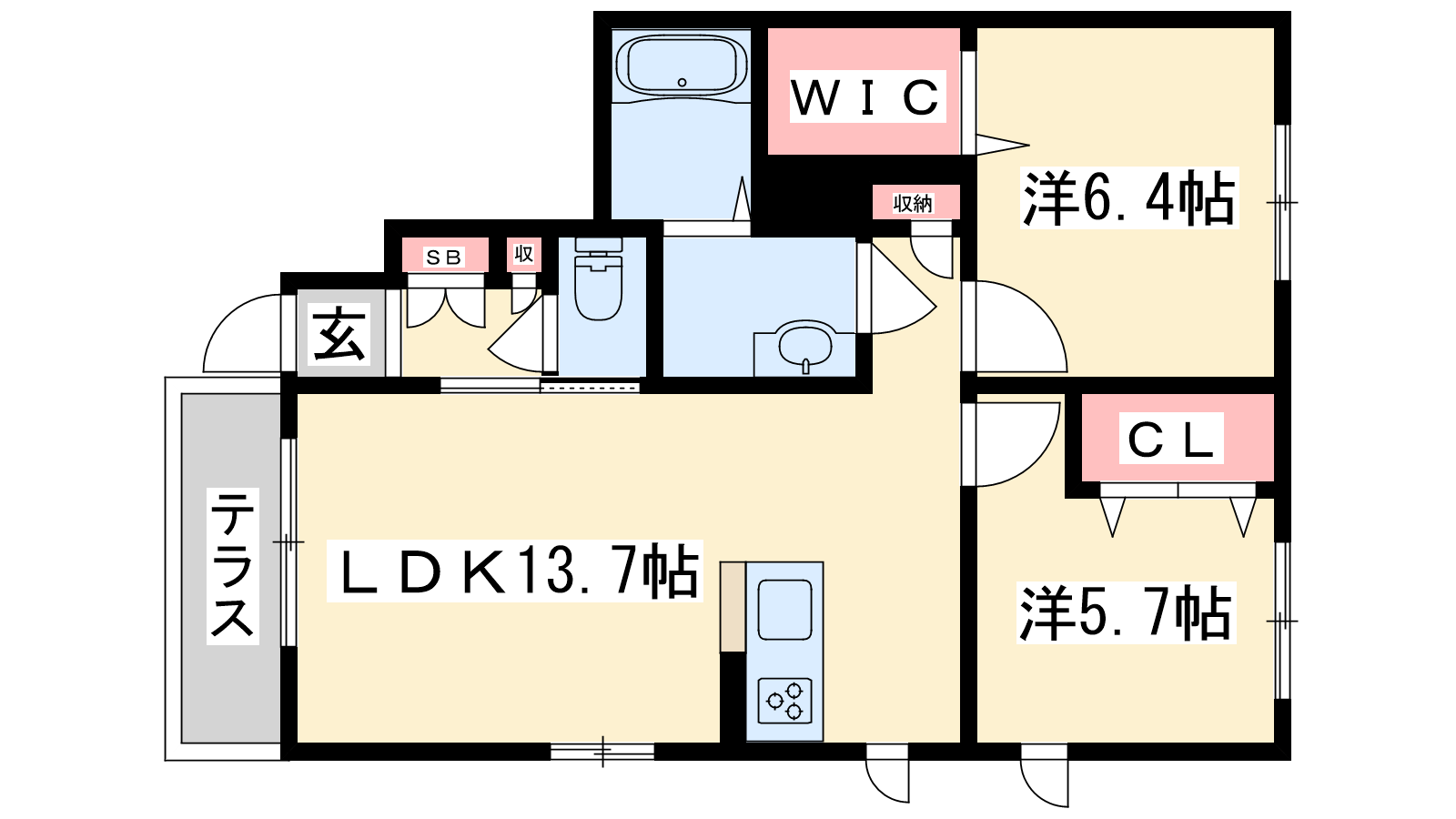 - LDK13.7帖、洋室6.4帖、洋室5.7帖