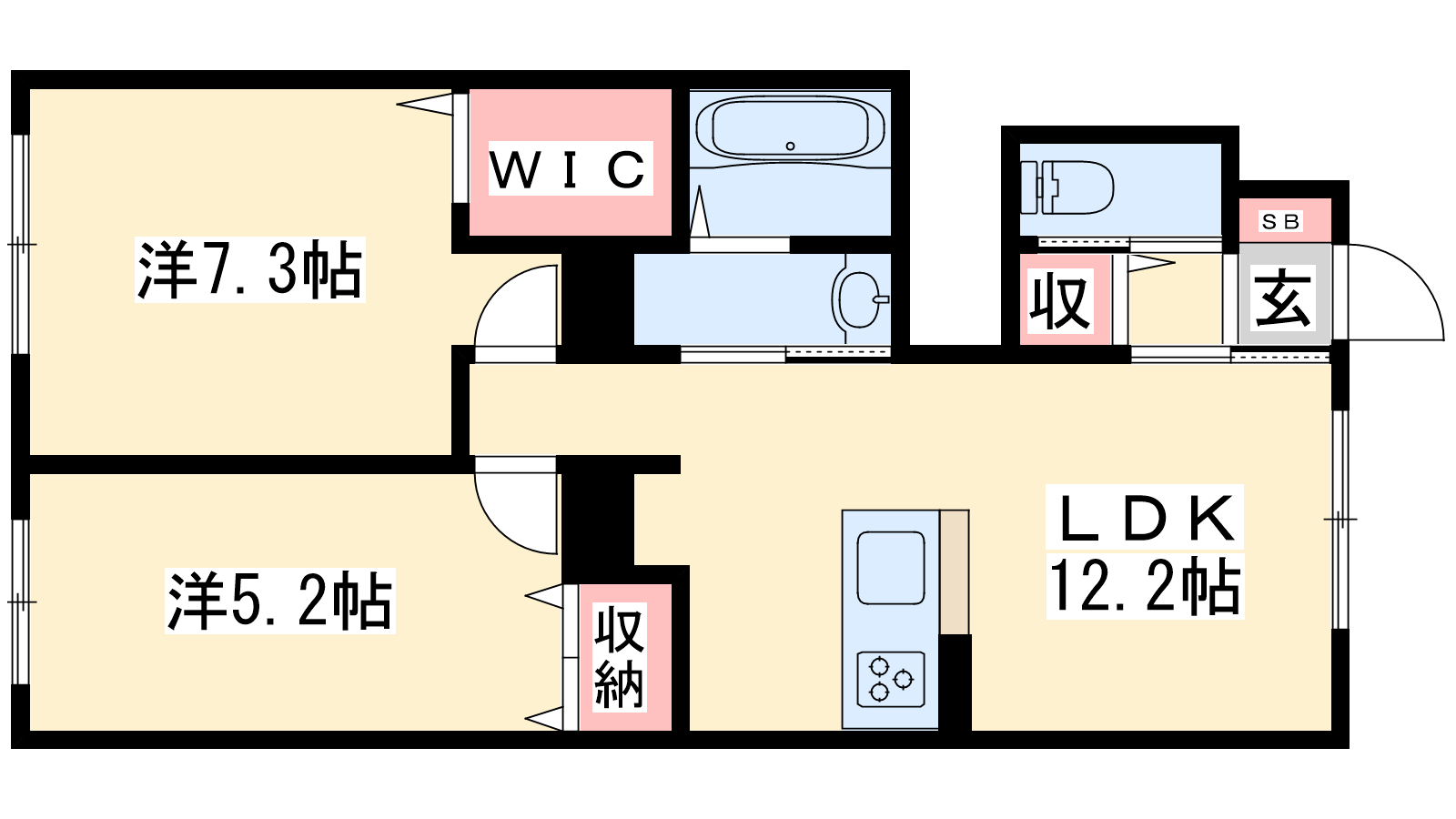 - LDK12.2帖、洋室7.3帖、洋室5.2帖