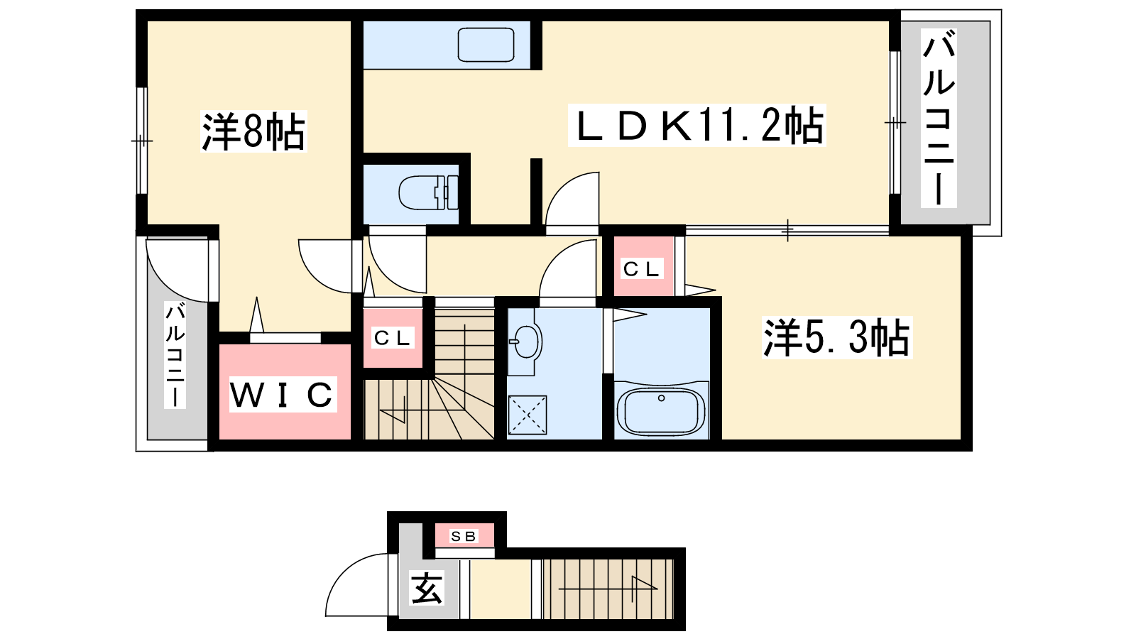 - LDK11.2帖、洋室8帖、洋室5.3帖