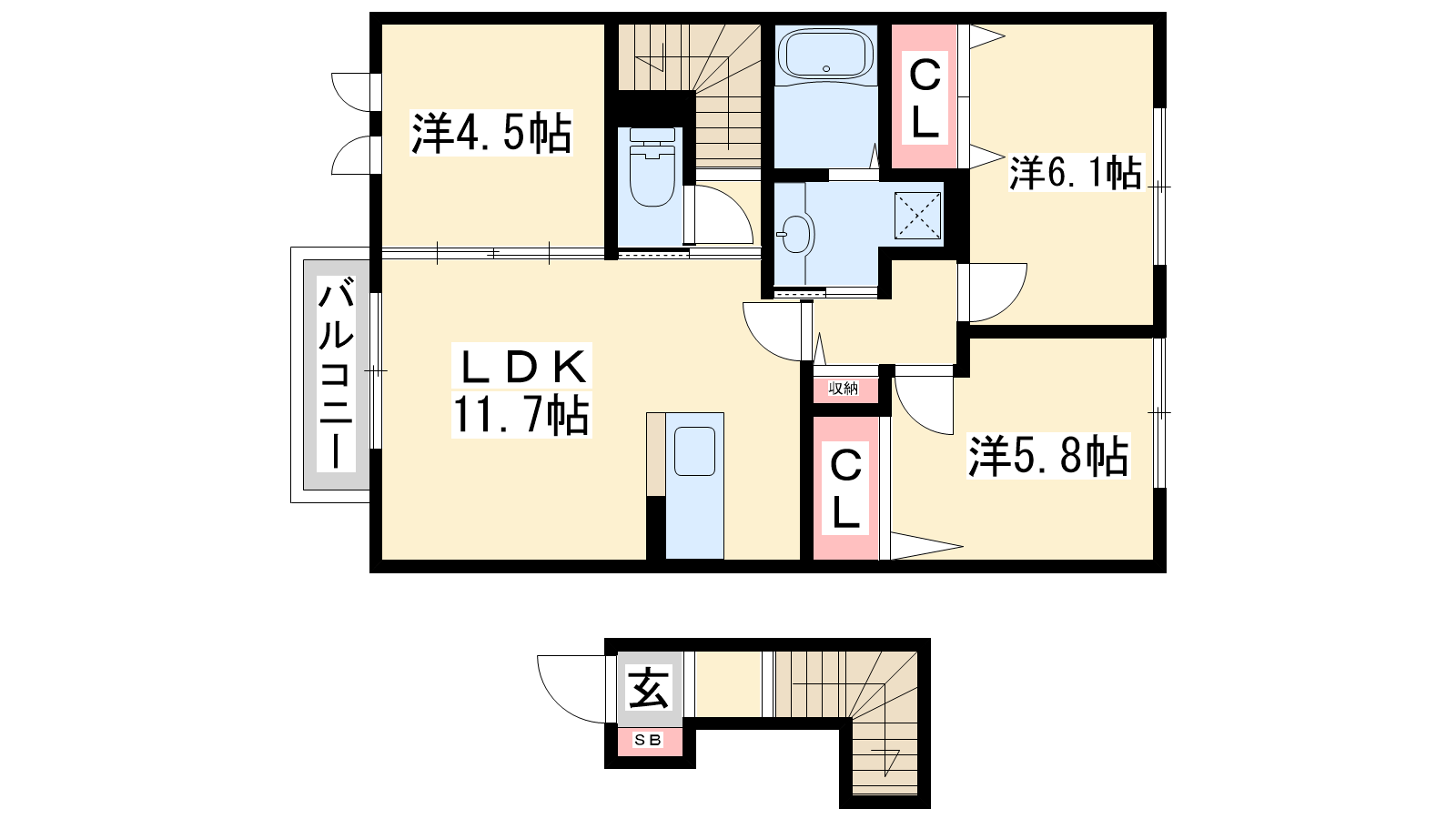 - LDK11.7帖、洋室6.1帖、洋室5.8帖、洋室4.5帖