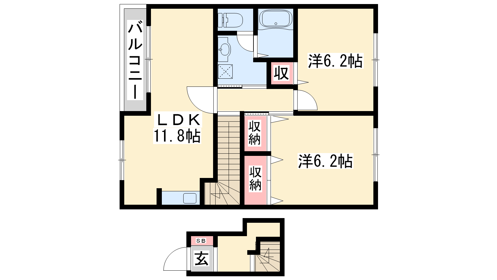 - LDK11.8帖、洋室6.2帖、洋室6.2帖