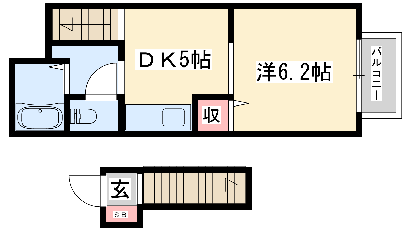 - DK5帖、洋室6.2帖