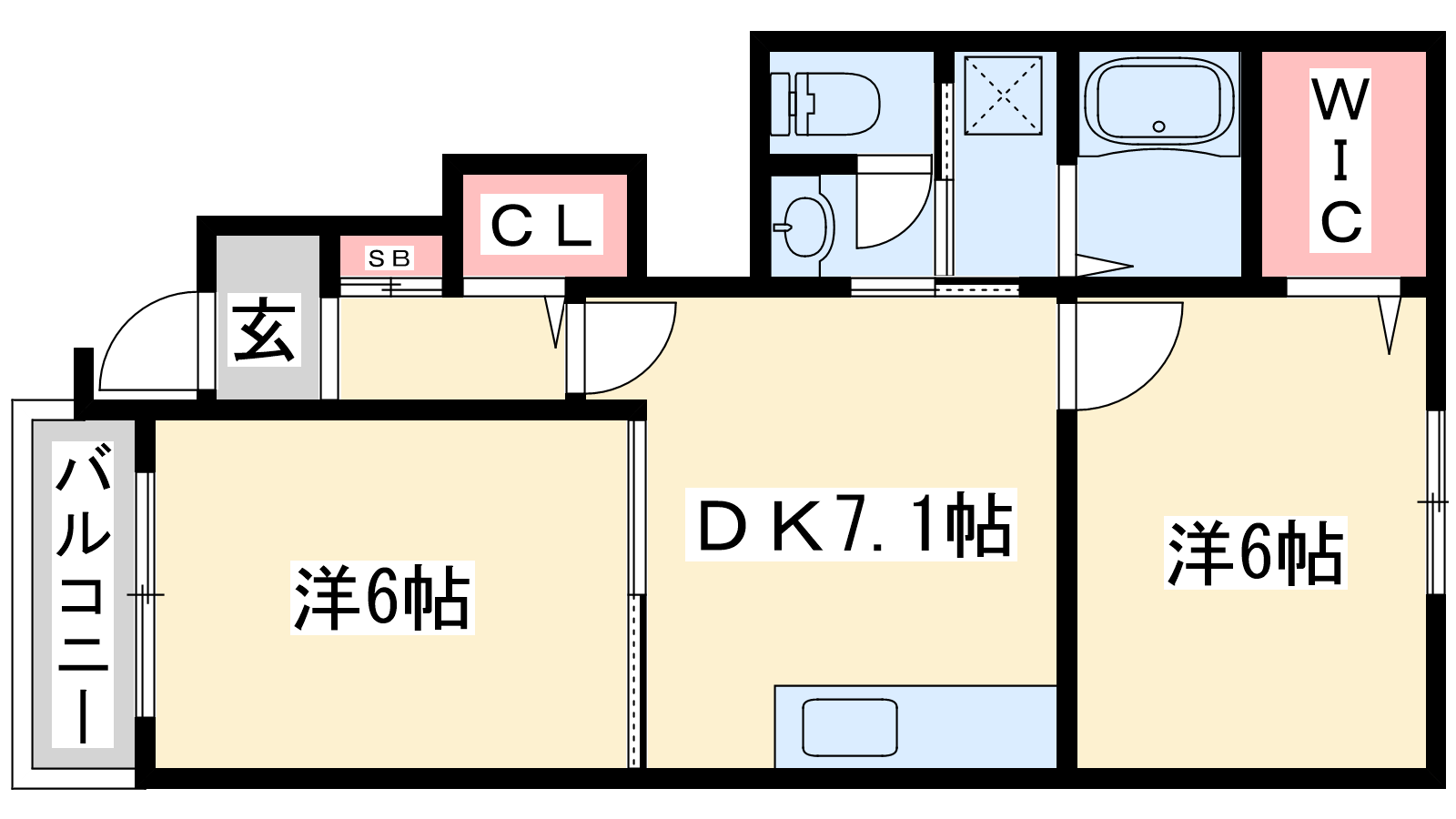 - DK7.1帖、洋室6帖、洋室6帖