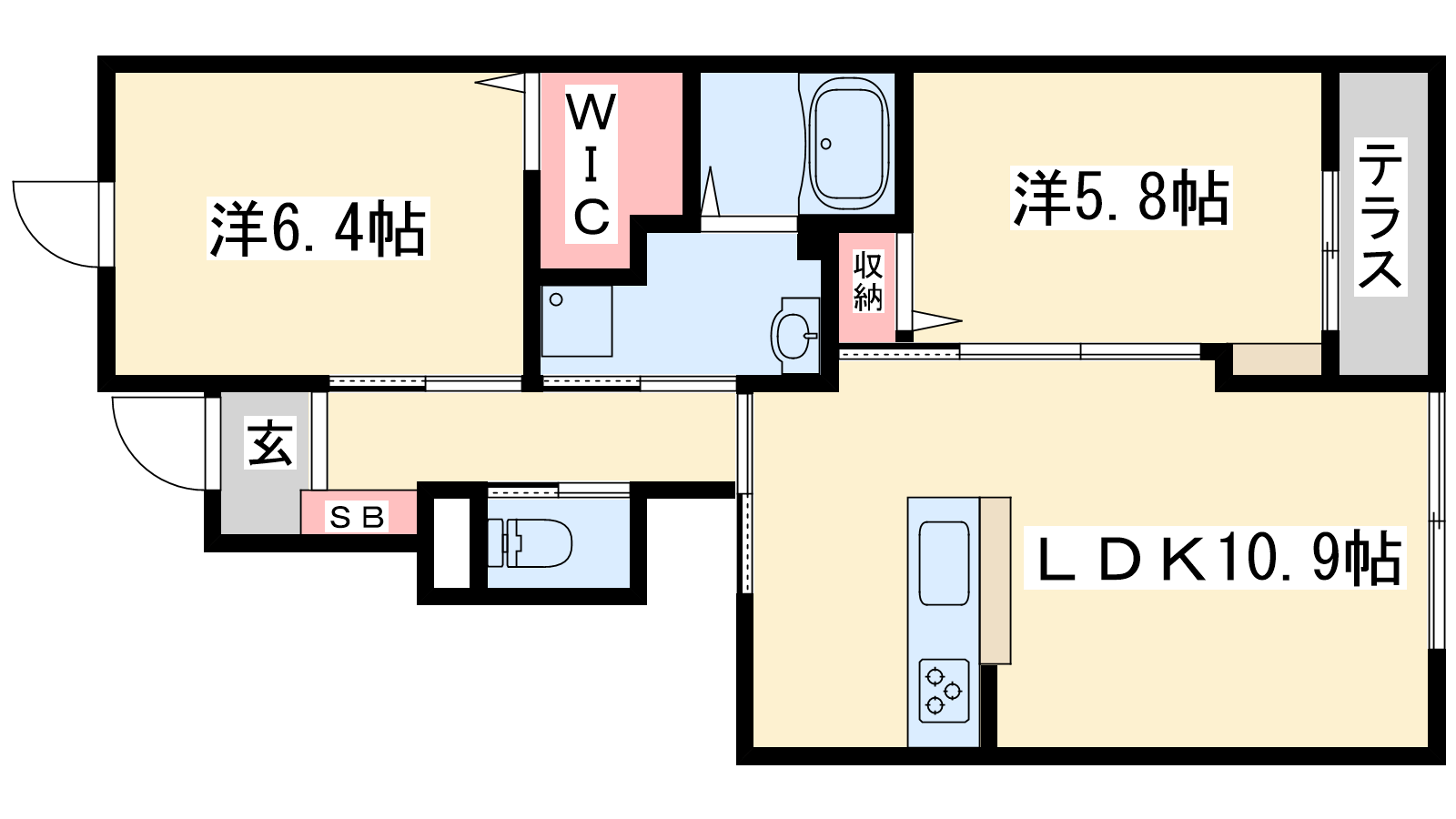 - LDK10.9帖、洋室6.4帖、洋室5.4帖