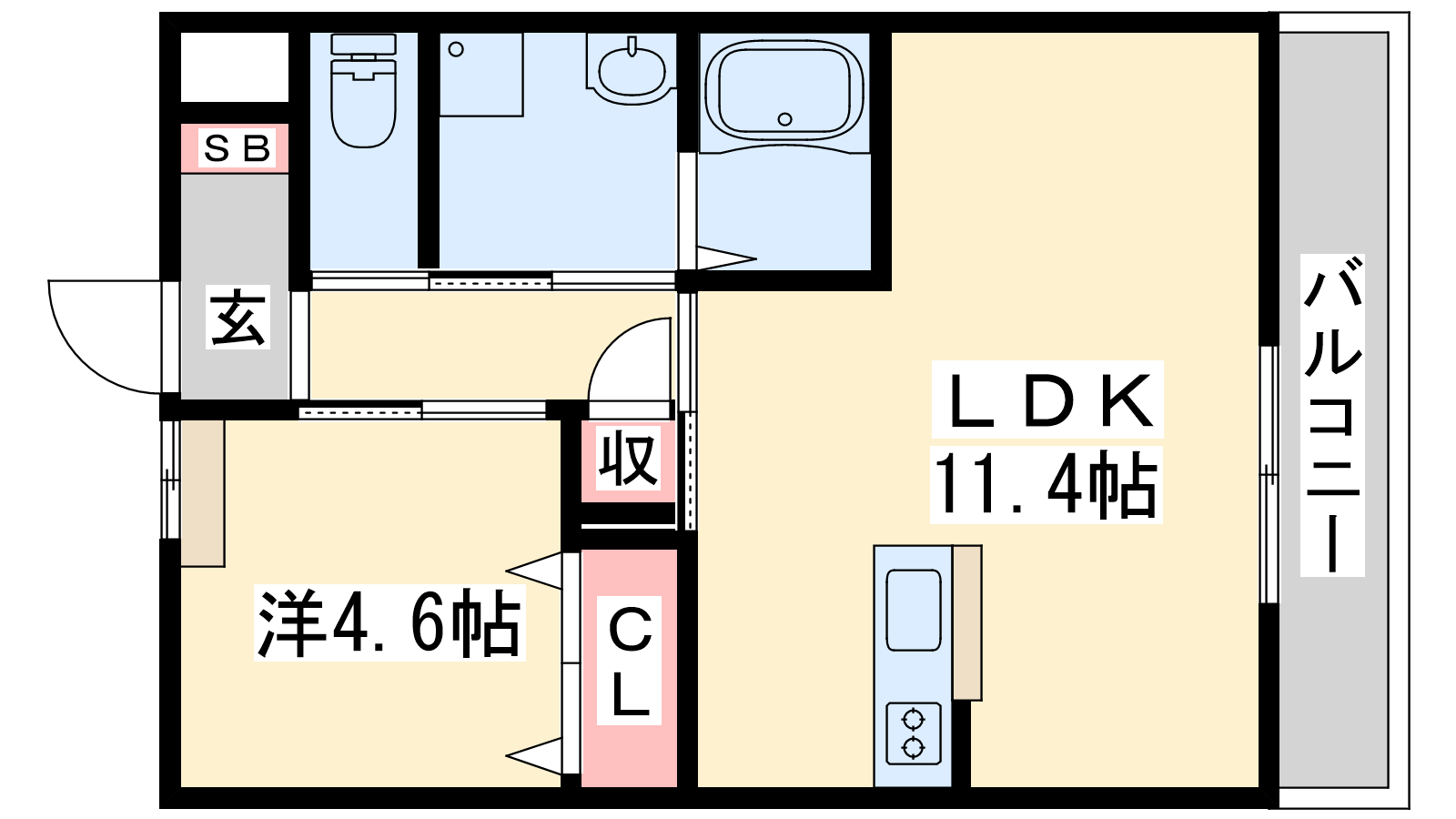 - LDK11.4帖、洋室4.6帖