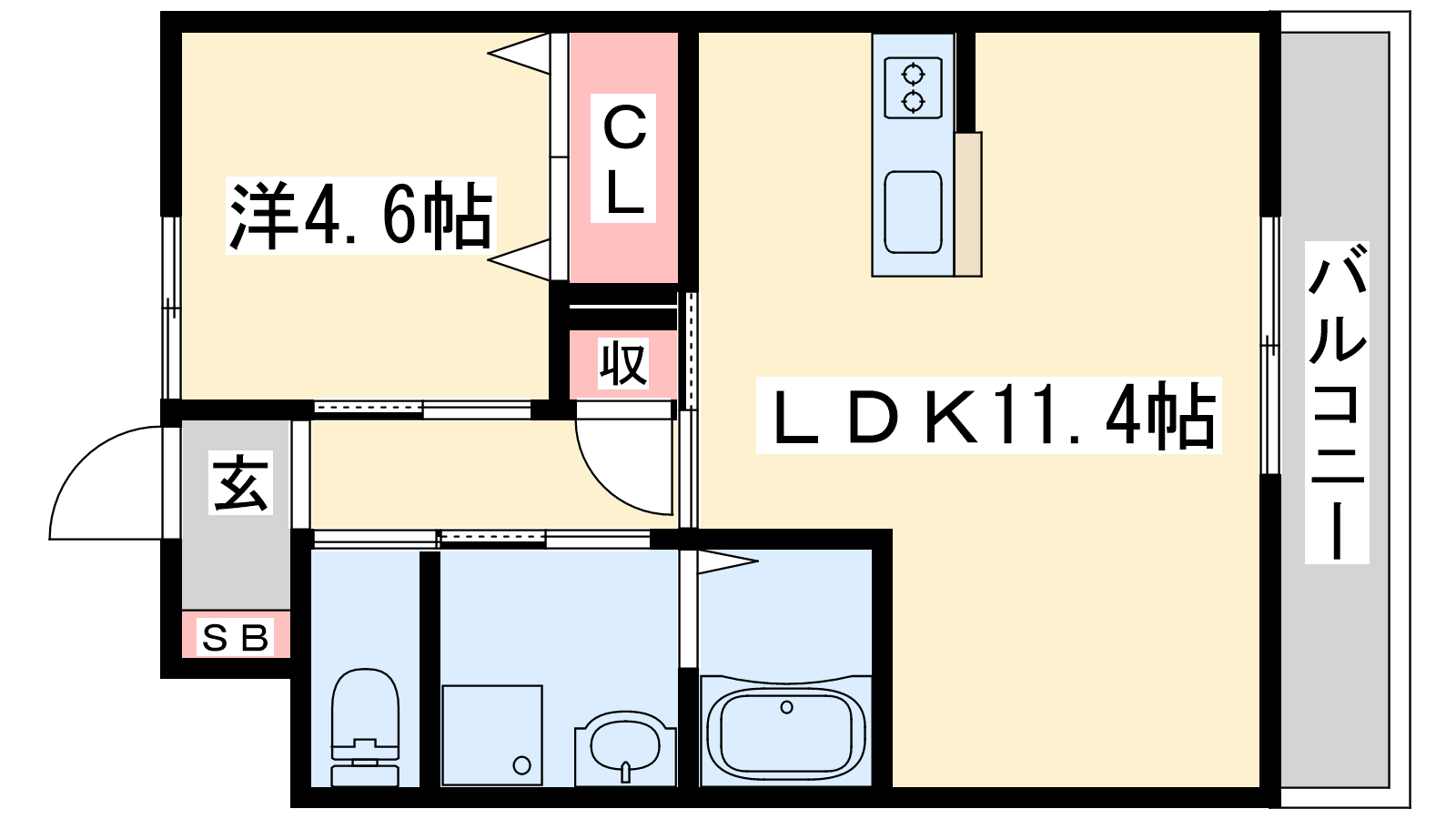 - LDK11.4帖、洋室4.6帖