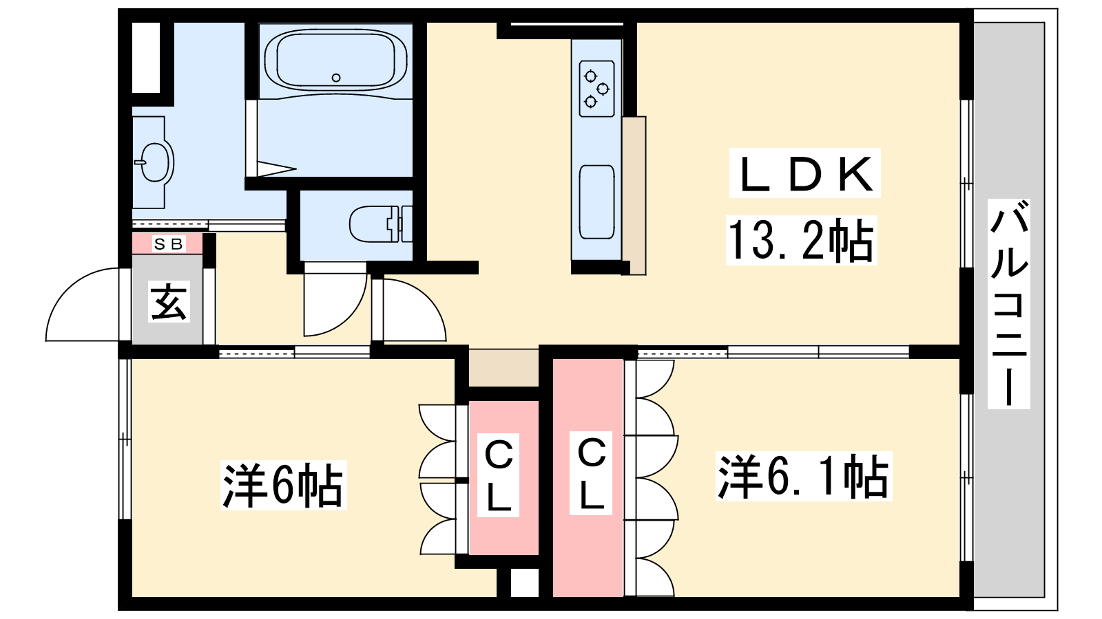- LDK13.2帖、洋室6.1帖、洋室6帖