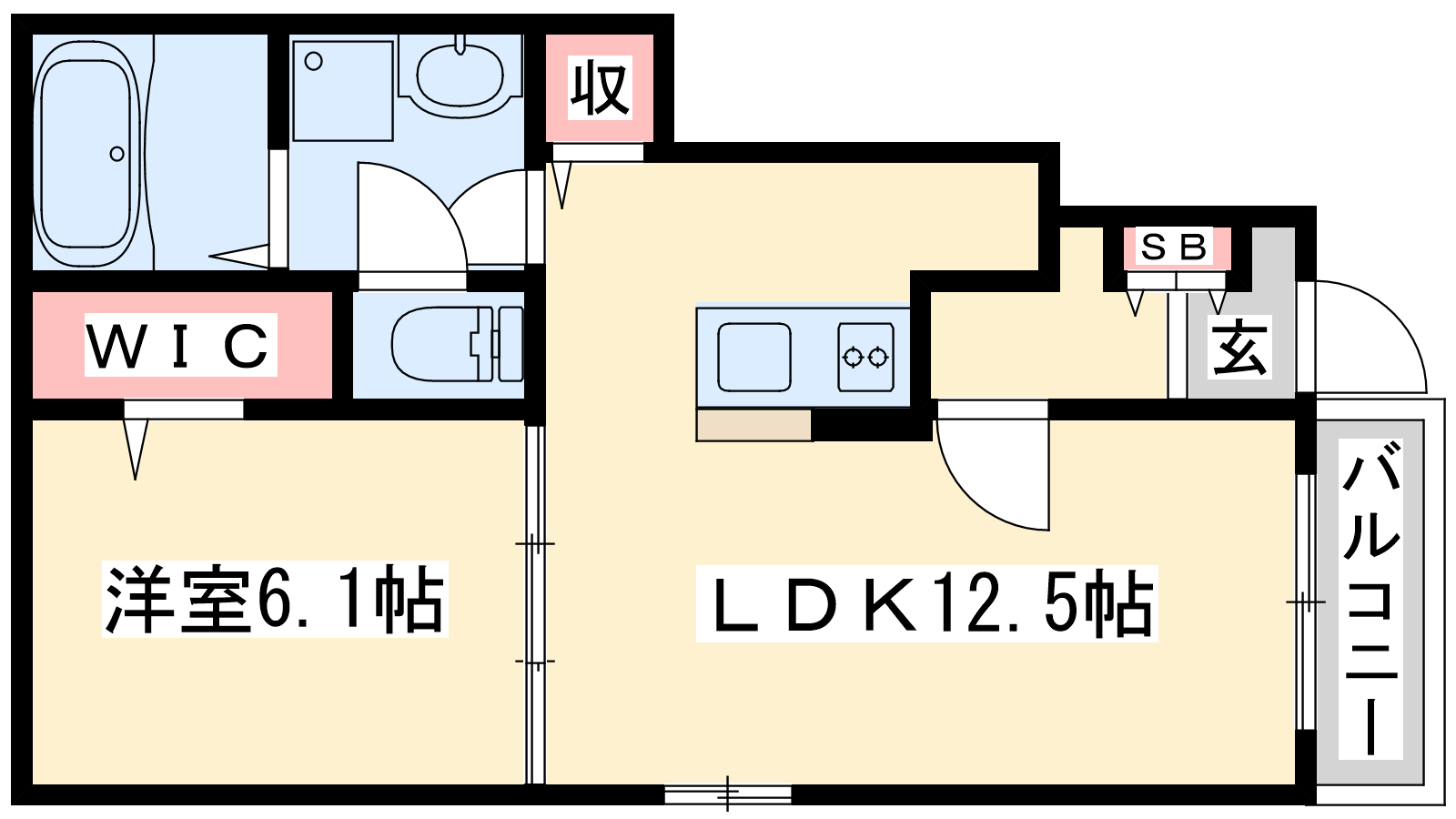 - LDK12.5帖、洋室6.1帖