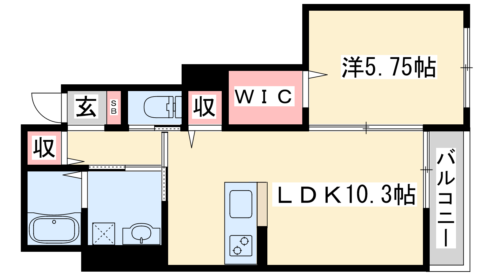 - LDK10.3帖、洋室5.75帖