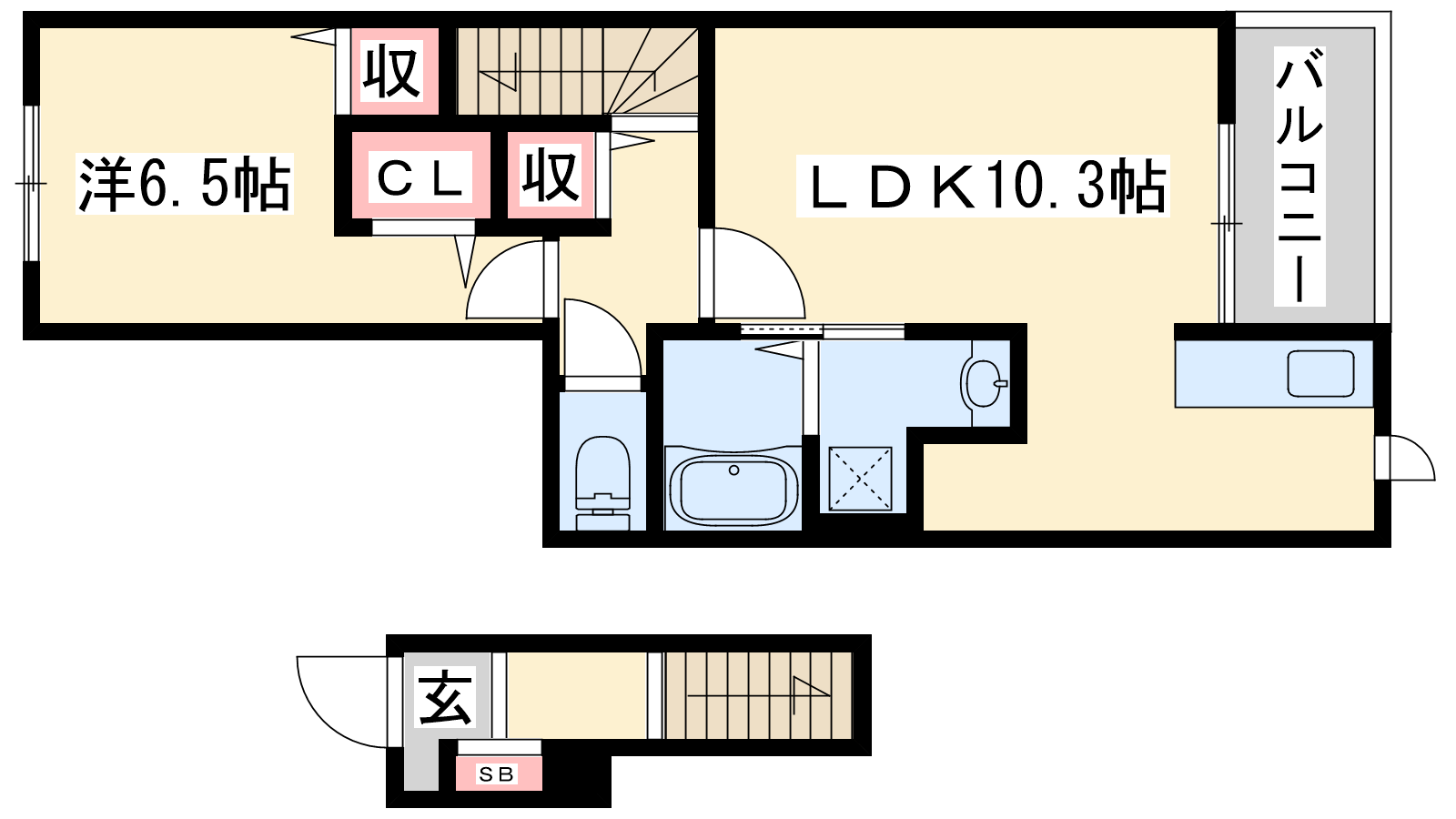 - LDK10.3帖、洋室6.5帖