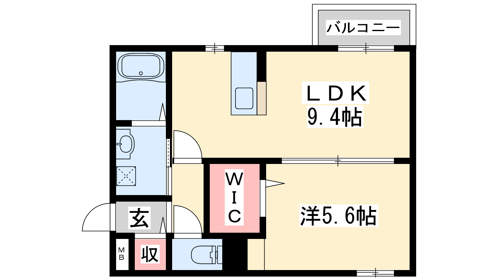 - LDK9.4帖、洋室5.6帖