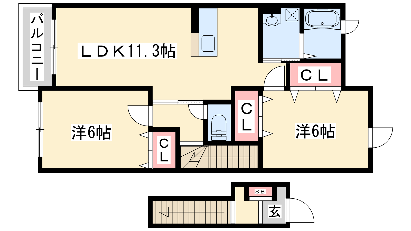 - LDK11.3帖、洋室6帖、洋室6帖