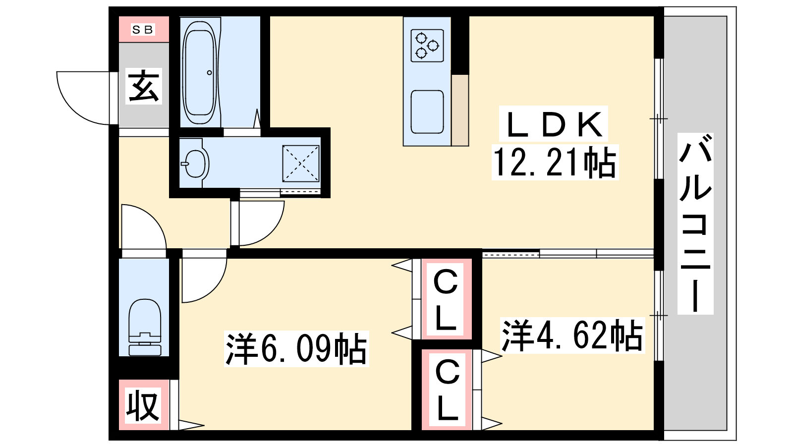 - LDK12.21帖、洋室6.09帖、洋室4.62帖