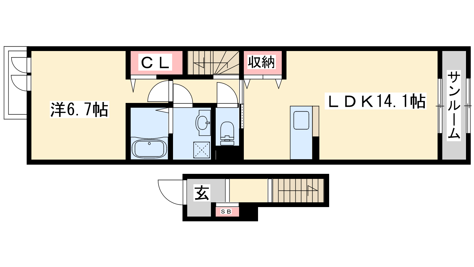 - LDK14.1帖、洋室6.7帖