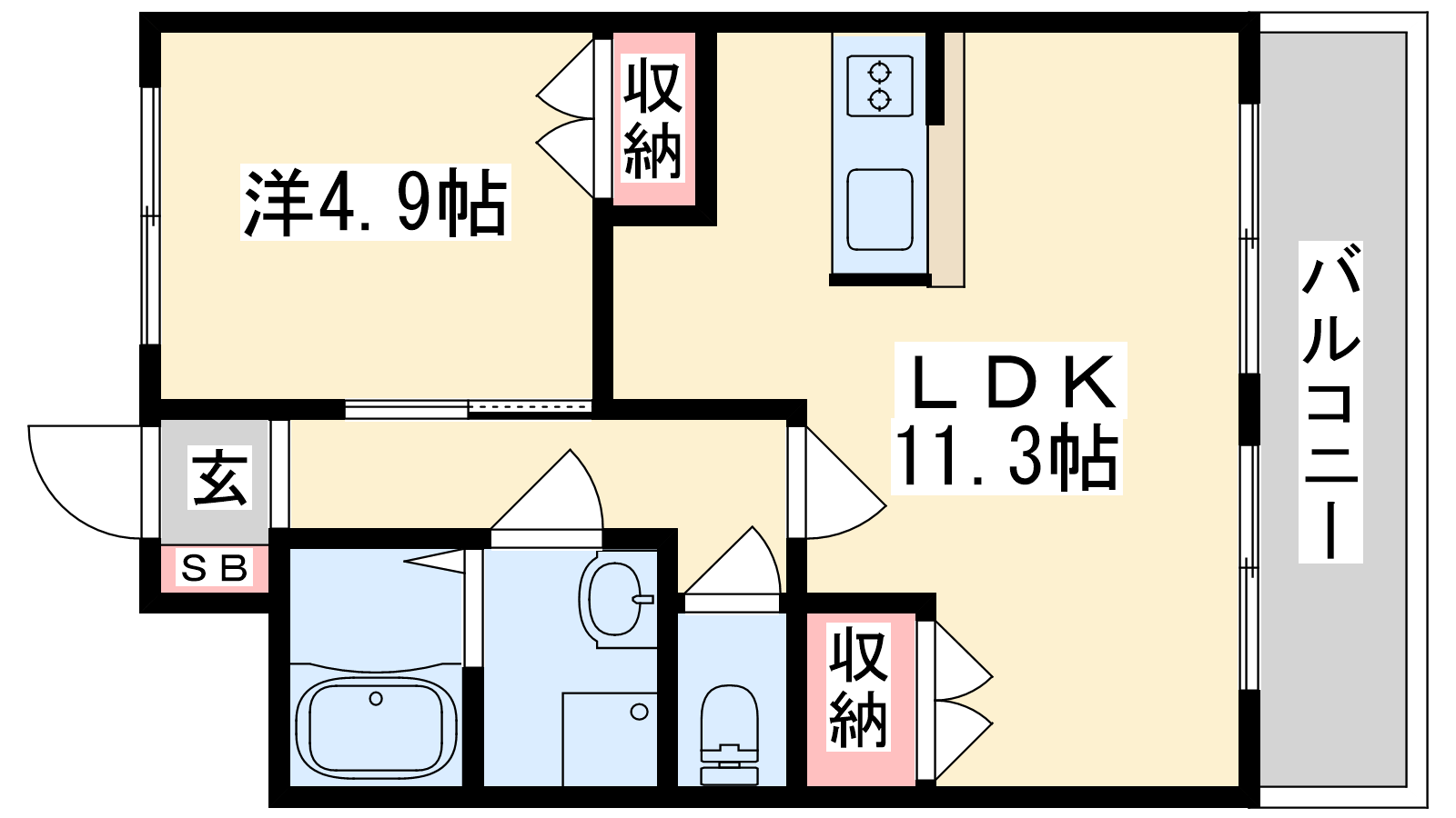 - LDK11.3帖、洋室4.9帖
