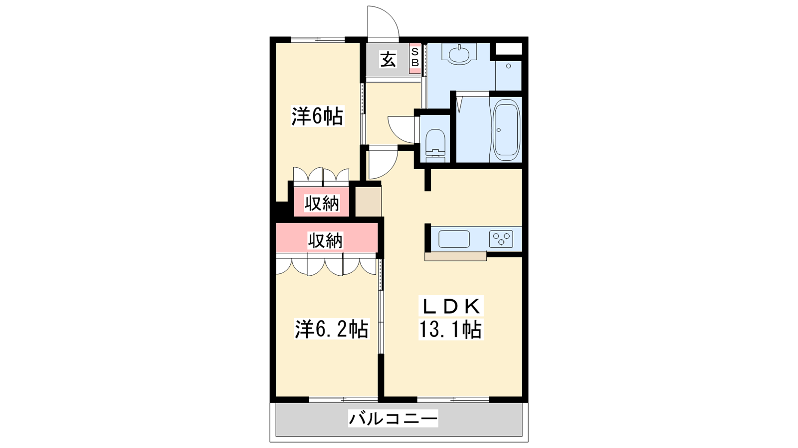 - LDK13.1帖、洋室6.2帖、洋室6帖