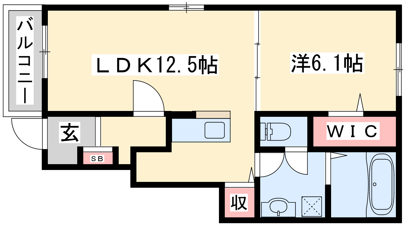 - LDK12.5帖、洋室6.1帖