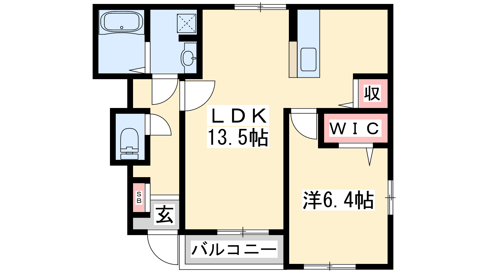 - LDK13.5帖、洋室6.4帖