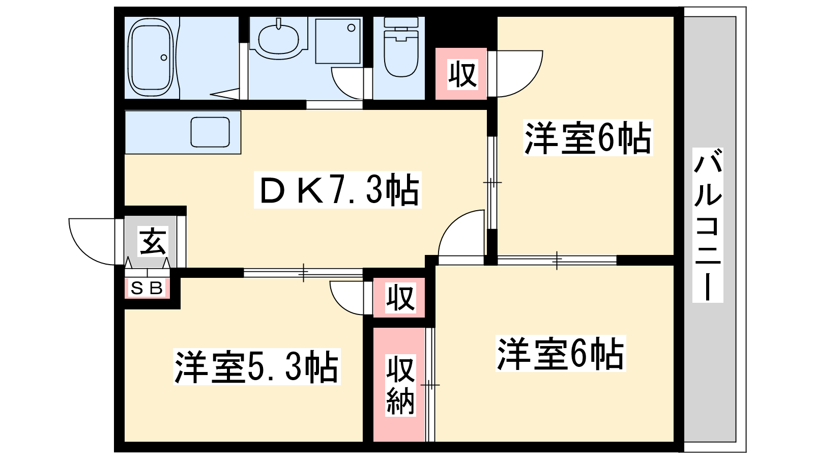 - DK7.3帖、洋室6帖、洋室6帖、洋室5.3帖