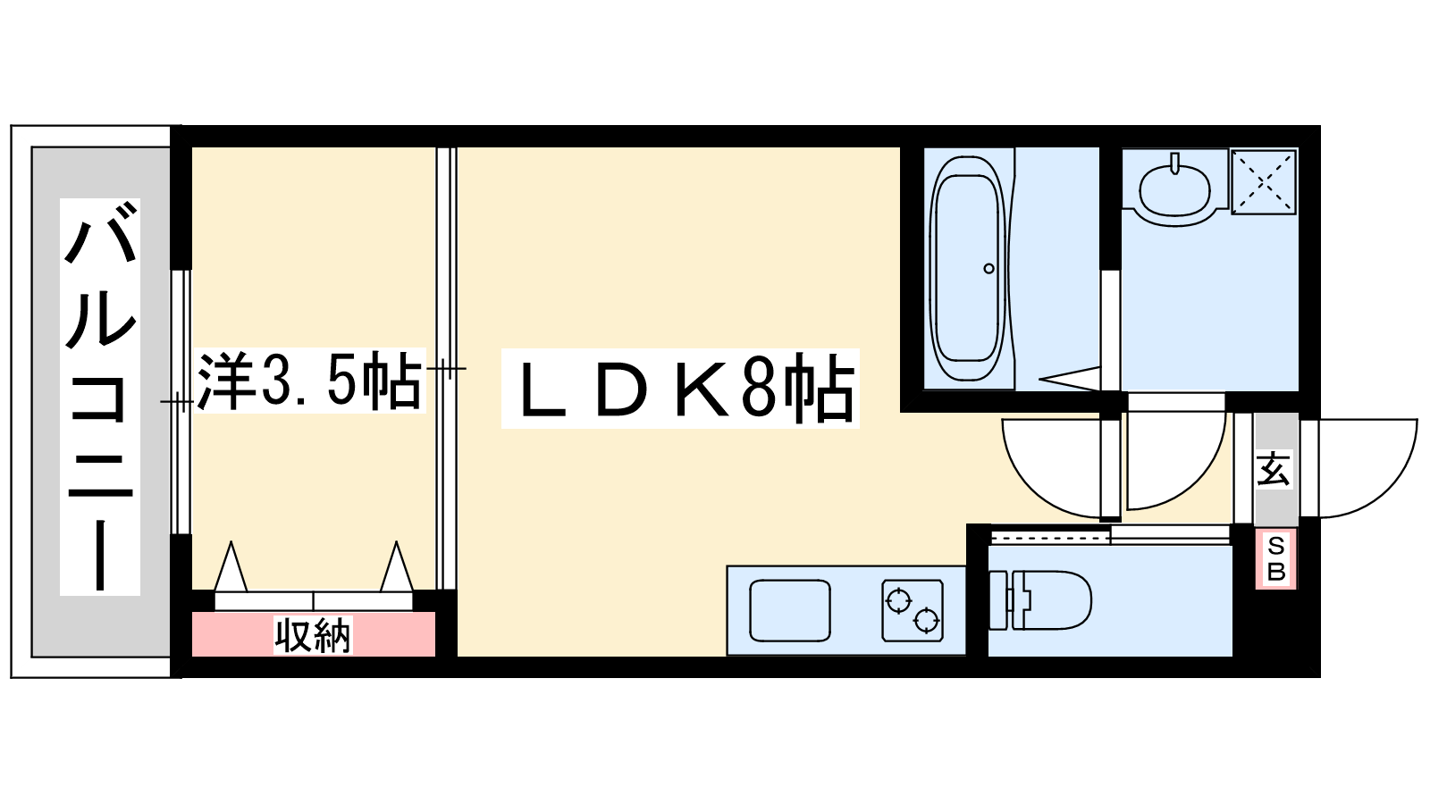 - LDK8帖、洋室3.5帖