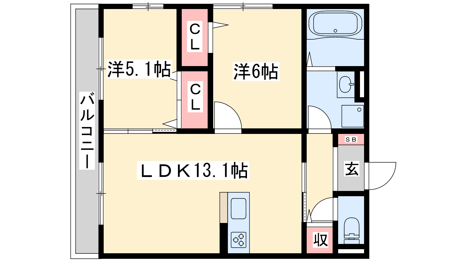 - LDK13.1帖、洋室6帖、洋室5.1帖