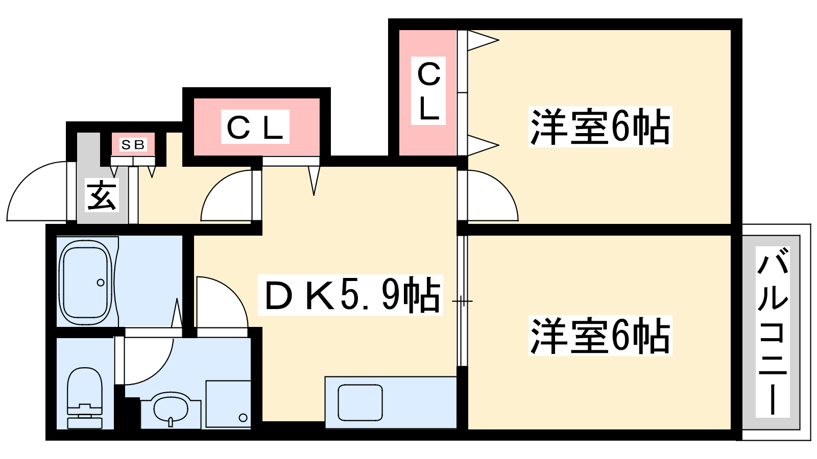 - DK5.9帖、洋室6帖、洋室6帖