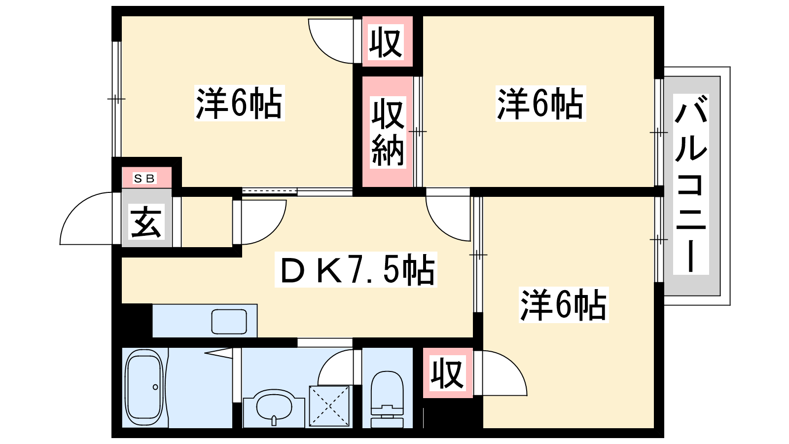 - DK7.5帖、洋室6帖、洋室6帖、洋室6帖