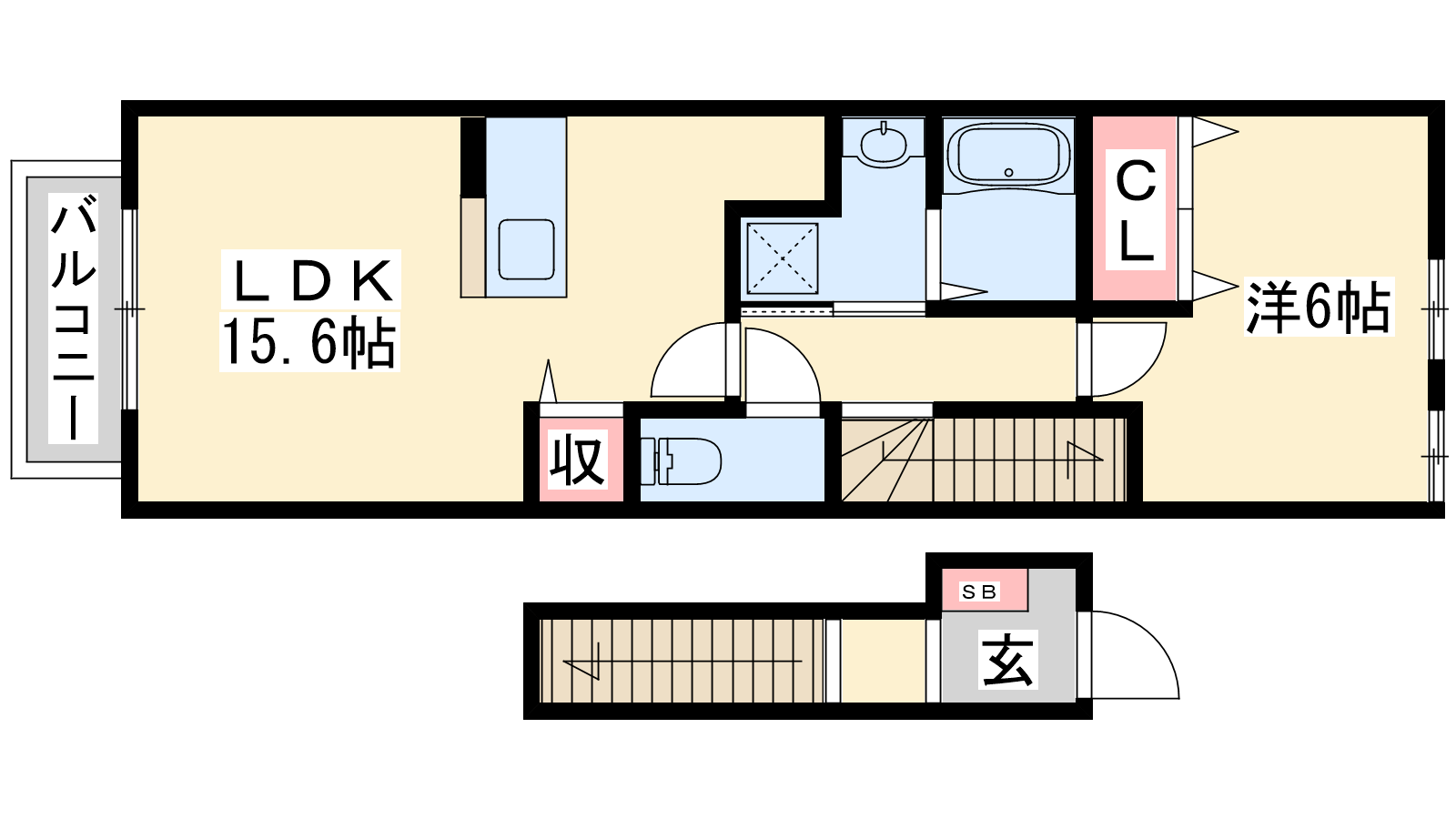 - LDK15.6帖、洋室6帖