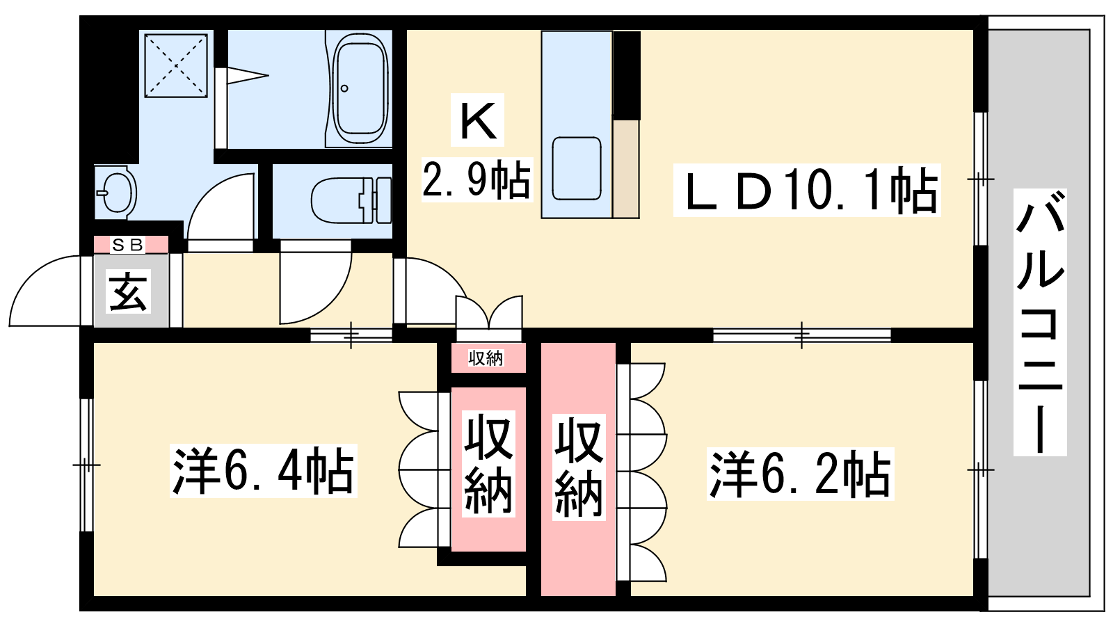 - LDK13帖、洋室6.4帖、洋室6.2帖