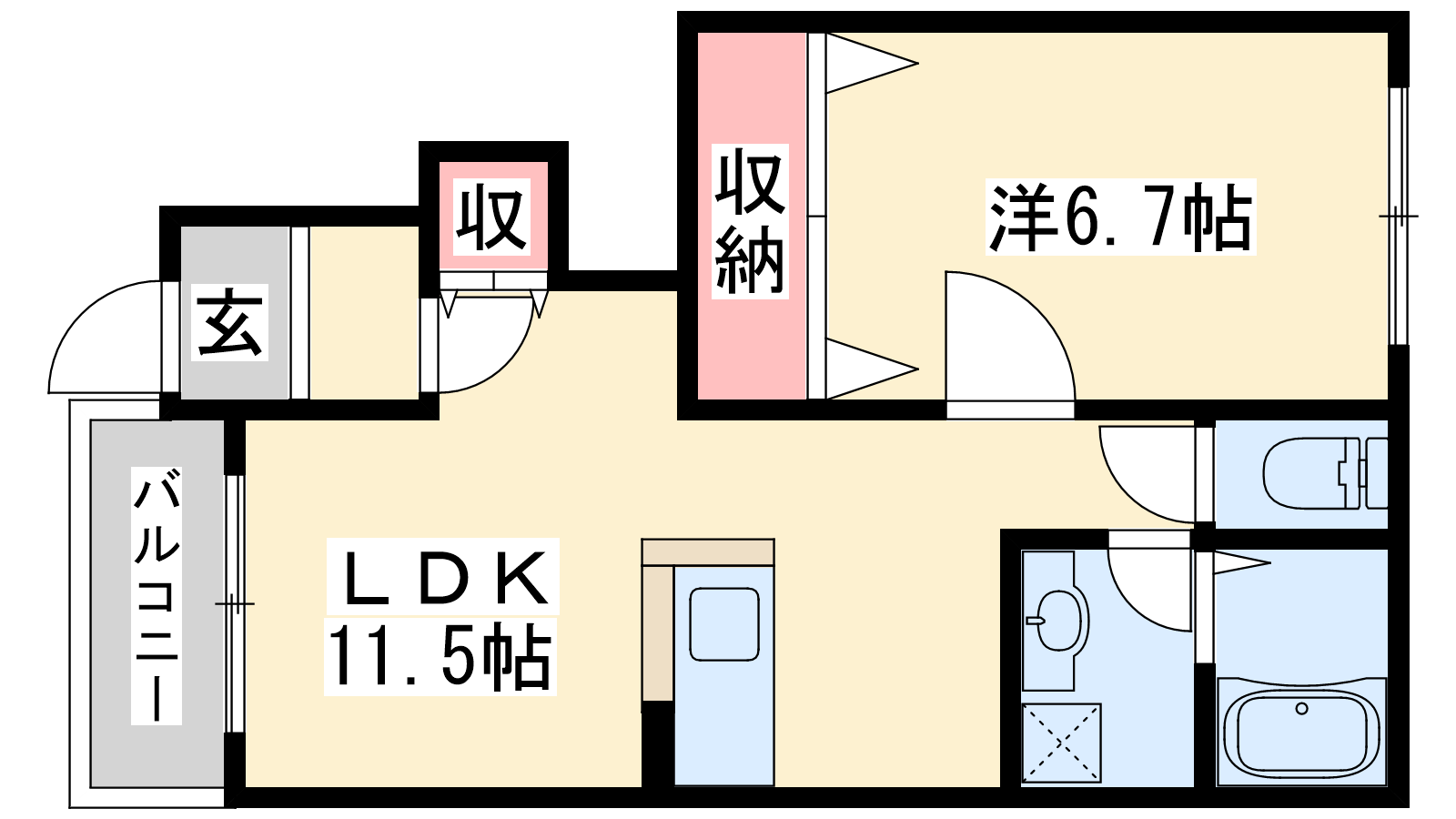 - LDK11.5帖、洋室6.7帖