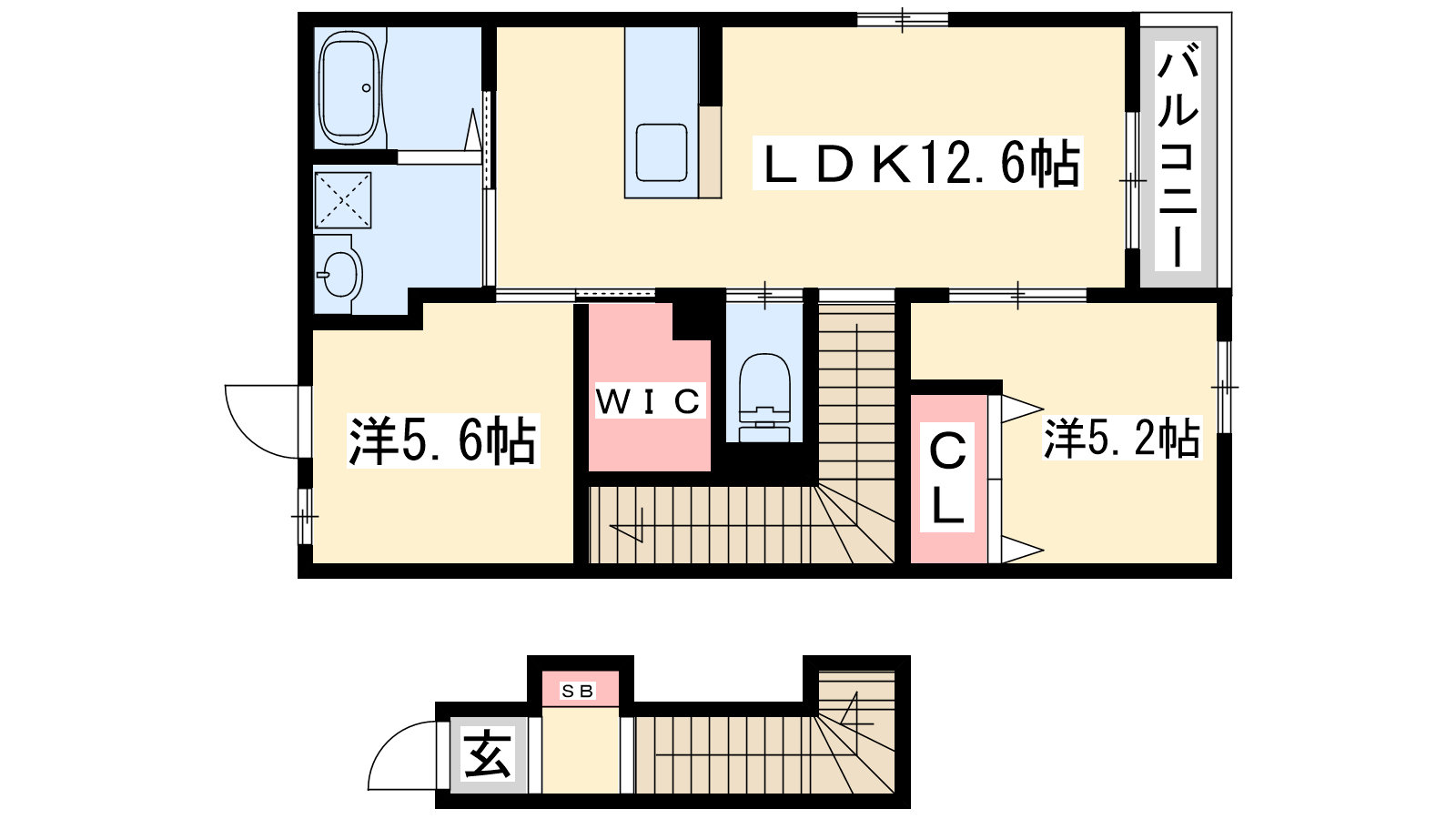 - LDK12.6帖、洋室5.6帖、洋室5.2帖