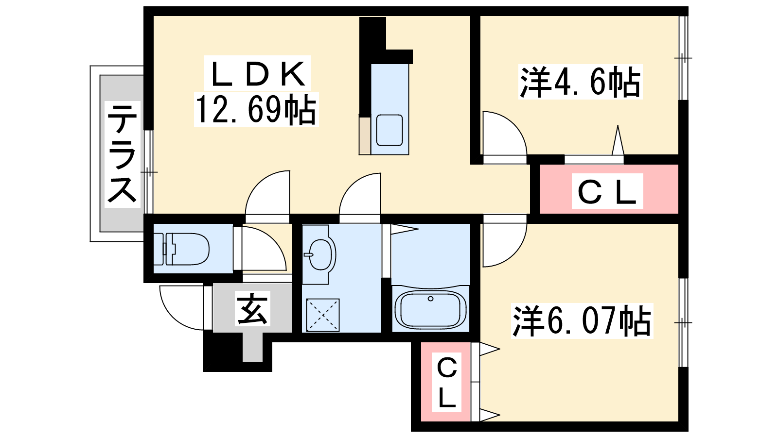 - LDK12.69帖、洋室6.07帖、洋室4.6帖