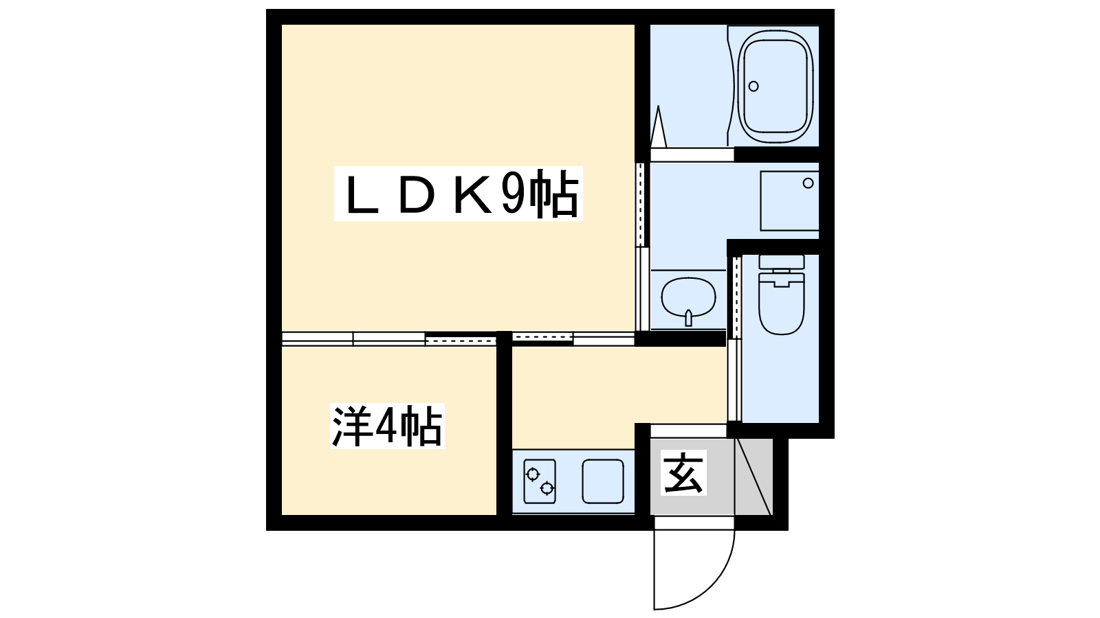 - LDK9帖、洋室4帖