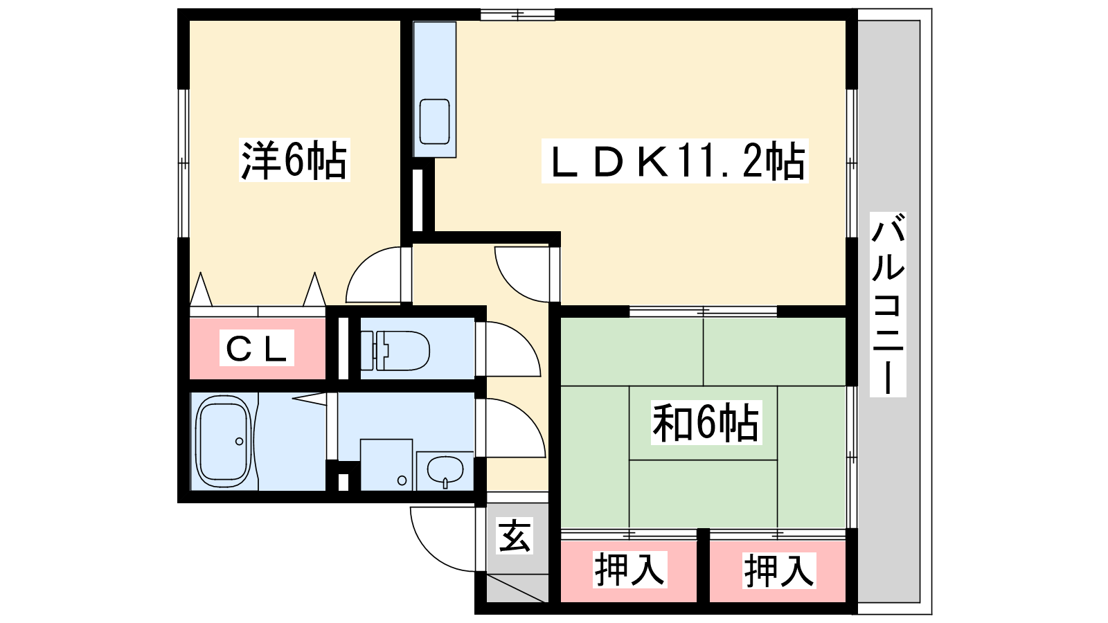 - LDK11.2帖、洋室6帖、和室6帖